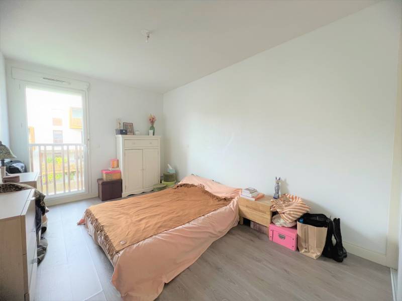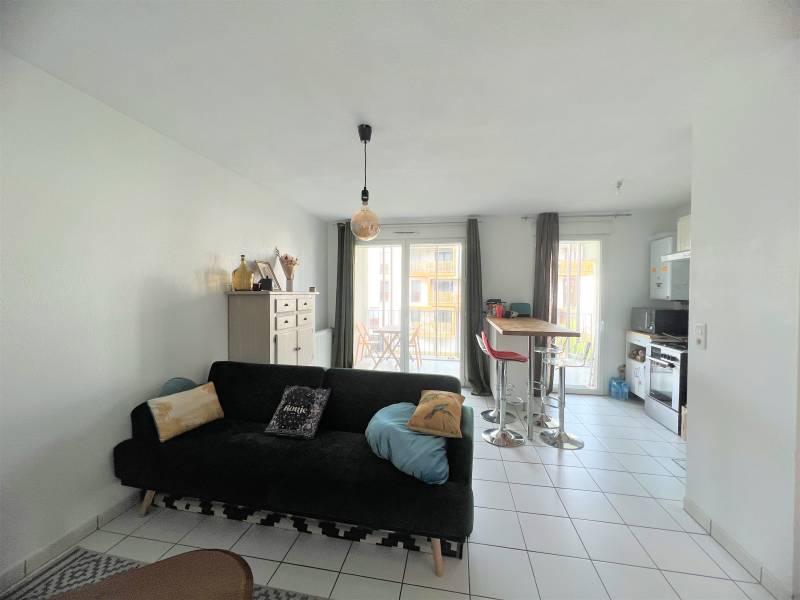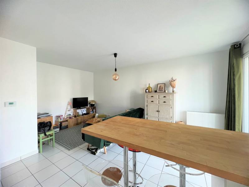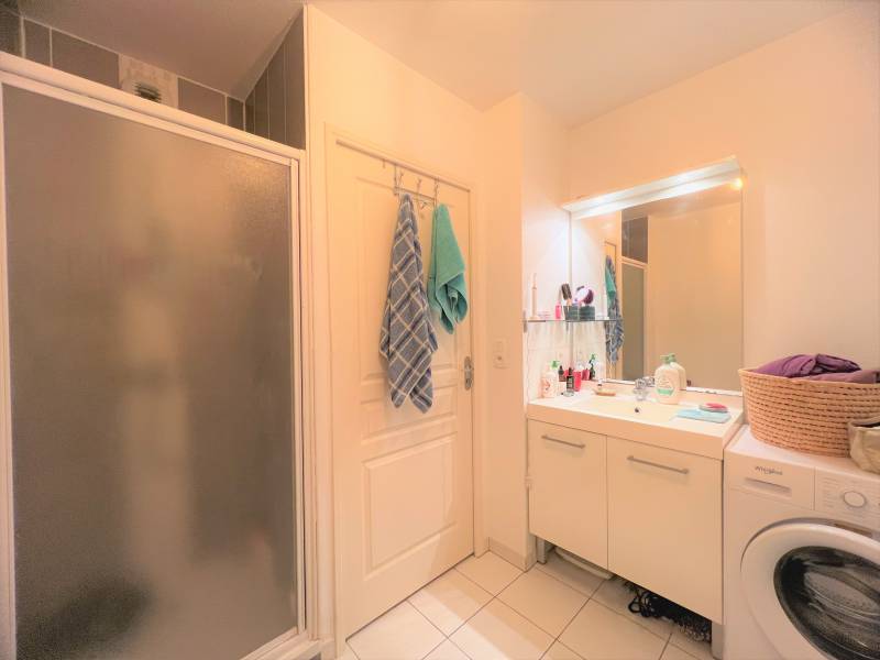Il est composé d'une entrée avec placard, d'une salle d'eau, d'une belle chambre (12.5m²) avec placard et d'une cuisine ouverte sur le salon/séjour donnant sur un balcon de 10m² exposé sud-ouest.