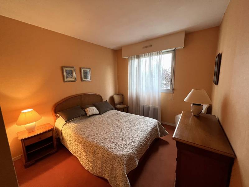 Il est composé d'une entrée, un séjour avec double exposition et balcon, une cuisine indépendante avec cellier, deux chambres dont une avec balcon, salle de douche, wc, un parking privatif extérieur dans résidence sécurisée.