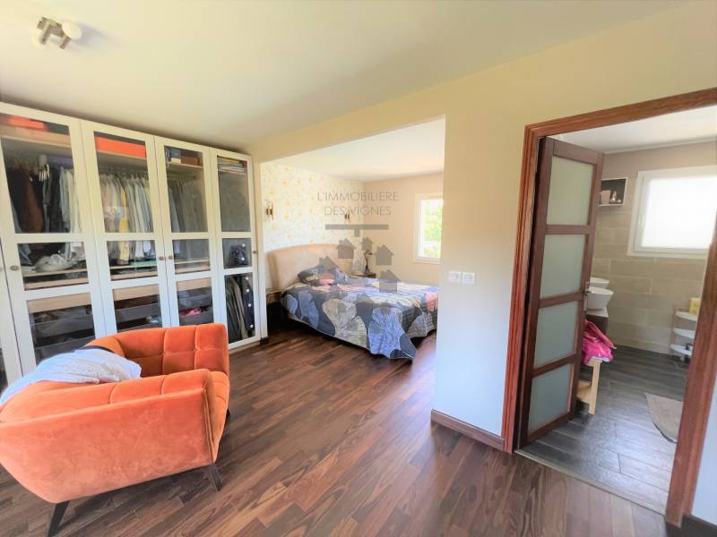 A l'étage : un salon de 50 m2 donnant sur 2 belles terrasses (l'une sur jardin l'autre avec vue sur parc et piscine), une suite parentale avec dressing, salle de bains et douche, wc indépendant (le tout d'une surface de 36 m2), une autre chambre de 24 m2 avec sa salle de bains (baignoire douche) et wc. Les extérieurs vous offrent dans un parc de 2000m2, une piscine de 16mx4m à débordement, une terrasse, un jardin arboré et une maisonnette pour enfants perchée dans un arbre.