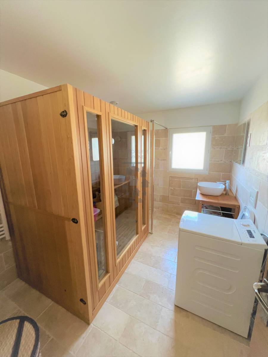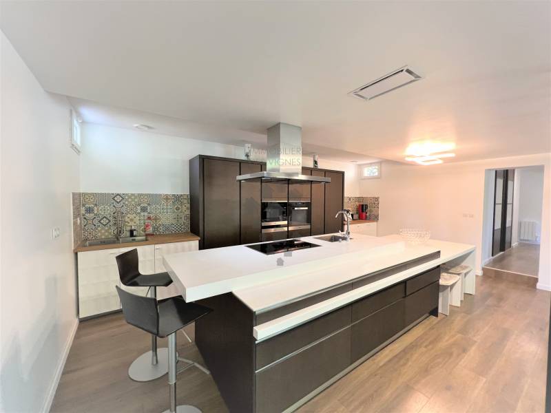 BOULIAC - Dans parc privé de standing, votre agence L'IMMOBILIERE DES VIGNES vous propose cette superbe maison aux volumes généreux. Une belle entrée s'ouvre sur une très grande et belle cuisine totalement équipée avec une salle à manger d'une surface de 50m2 ouverte sur une véranda donnant sur terrasse, jardin et piscine de 16m de long. Sur ce même plateau : trois chambres, une salle de douche avec wc, wc invités, et cave à vin.