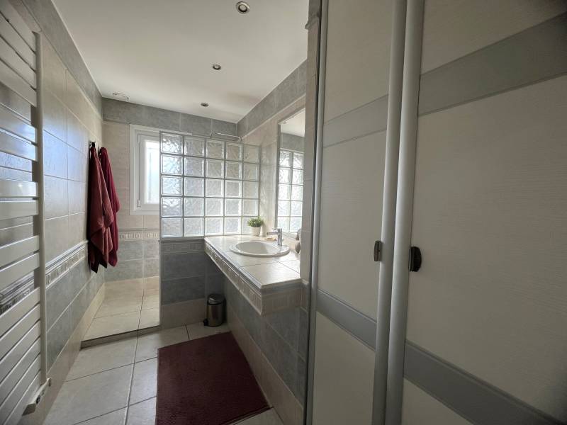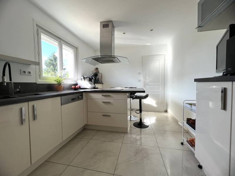 A Saint Médard d'Eyrans - Au calme - Proche du centre, de ses commodités et des écoles. Votre agence indépendante locale, L'IMMOBILIERE DES VIGNES, vous propose cette jolie maison de plain pied composée d'une entrée avec placards, de 3 chambres (dont deux avec placards),d'une salle d'eau, d'une buanderie, wc, d’une cuisine fermée mais que l'on peut ouvrir sur un grand séjour lumineux prolongé par une agréable terrasse et sa piscine. Vous serez séduits par ses prestations : volets roulants motorisés, climatisation réversible, cheminée insert, portail motorisé avec interphone, piscine au sel chauffée avec volet motorisé. Garage attenant de 21m².