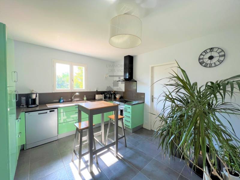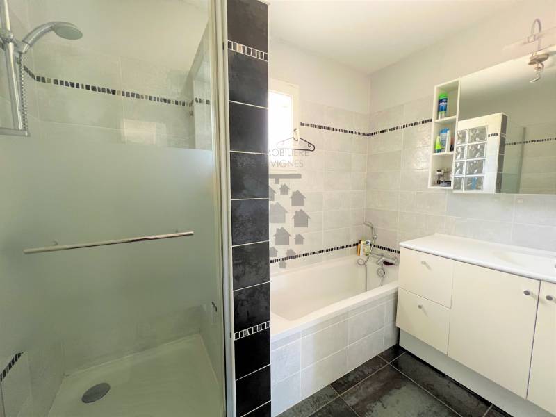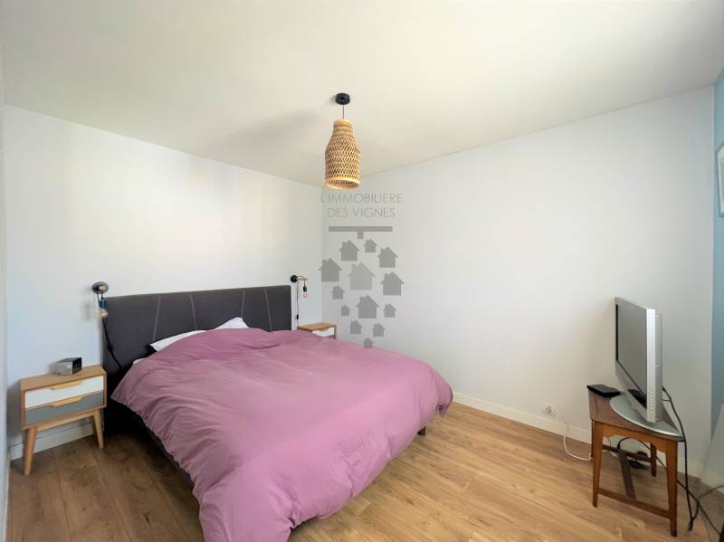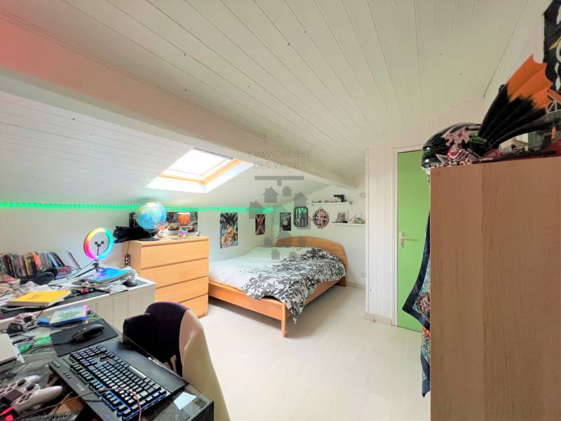 Votre agence indépendante locale, L'IMMOBILIERE DES VIGNES, vous présente, au calme, cette jolie maison composée de 3 chambres, d'une salle d'eau, d'une grande salle de jeu, d'une salle de bains avec douche et baignoire, WC, d'un cellier/buanderie et d'une cuisine ouverte sur un beau salon/séjour lumineux donnant sur une agréable terrasse.