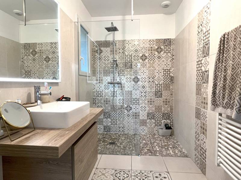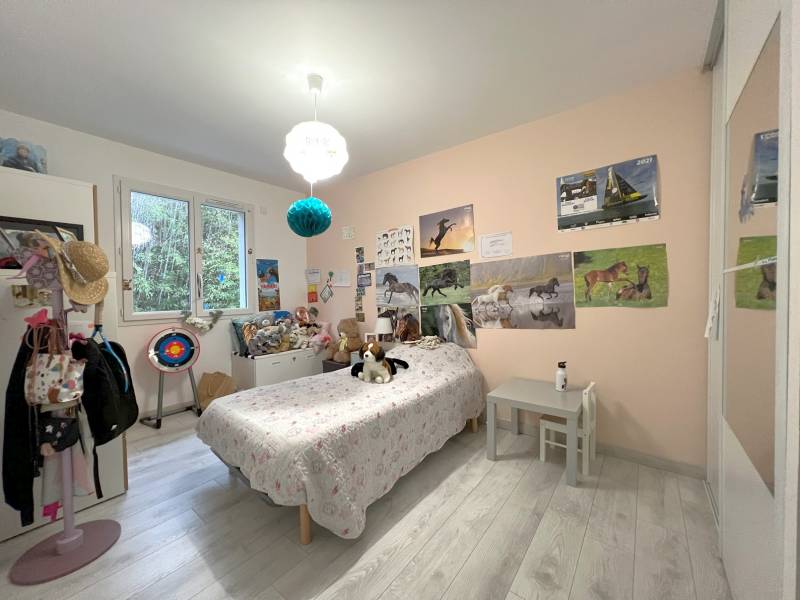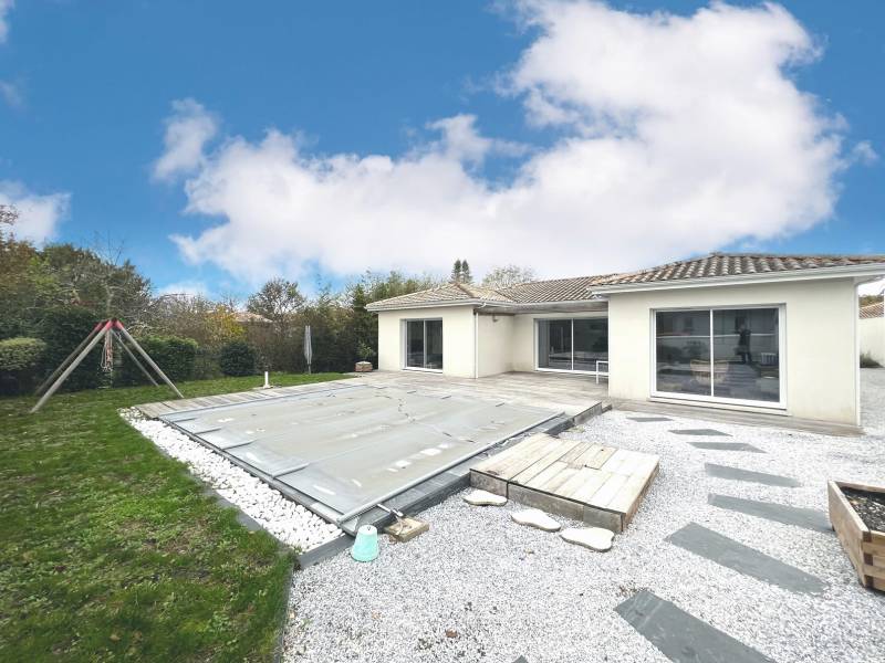 Votre agence indépendante locale vous propose au calme, EN EXCLUSIVITE, cette maison contemporaine de 2016, de plain pied, composée d'une entrée, de 3 chambres avec placards (12.5m², 13m², 12.15m²) dont une suite parentale avec sa salle d'eau et son dressing, d'une salle de bains, d'un cellier, et d'une cuisine entièrement équipée ouverte sur un agréable salon/séjour lumineux donnant sur une agréable terrasse en bois prolongé par une piscine chauffée.