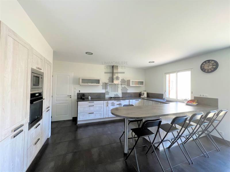 Elle est composée d'une cuisine entièrement équipée (plaques, four, four à micro-onde, hotte, lave vaisselle) ouverte sur un beau salon/séjour donnant sur une agréable terrasse d'environ 30m2, d'un dressing, WC, d'une salle d'eau, d'un coin bureau, et de 3 chambres.