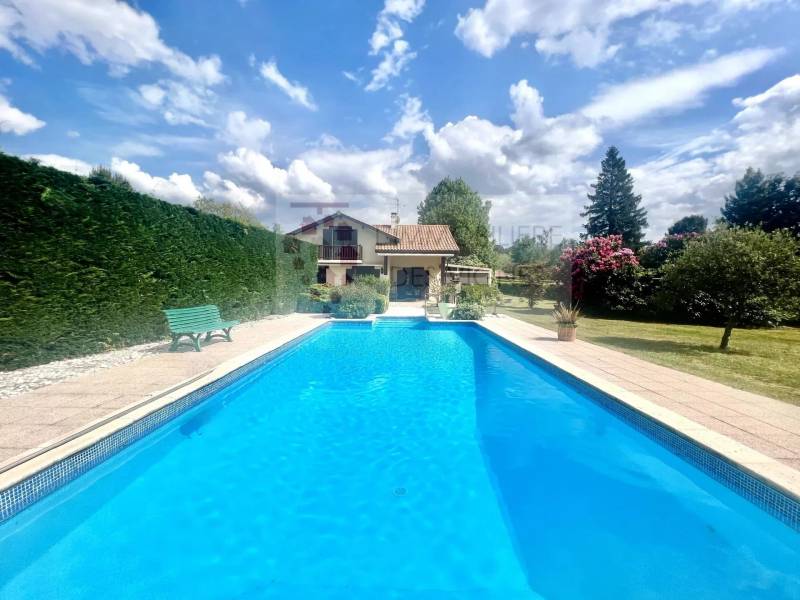 Un double garage de plus de 80m² avec mezzanine, une cave et une piscine chauffée (5 x 10) viennent compléter ce bien.