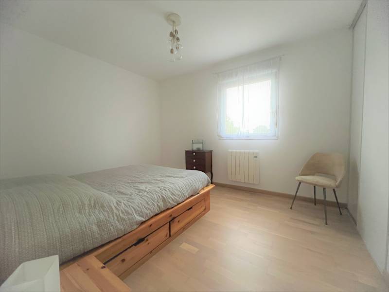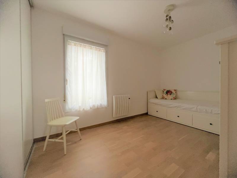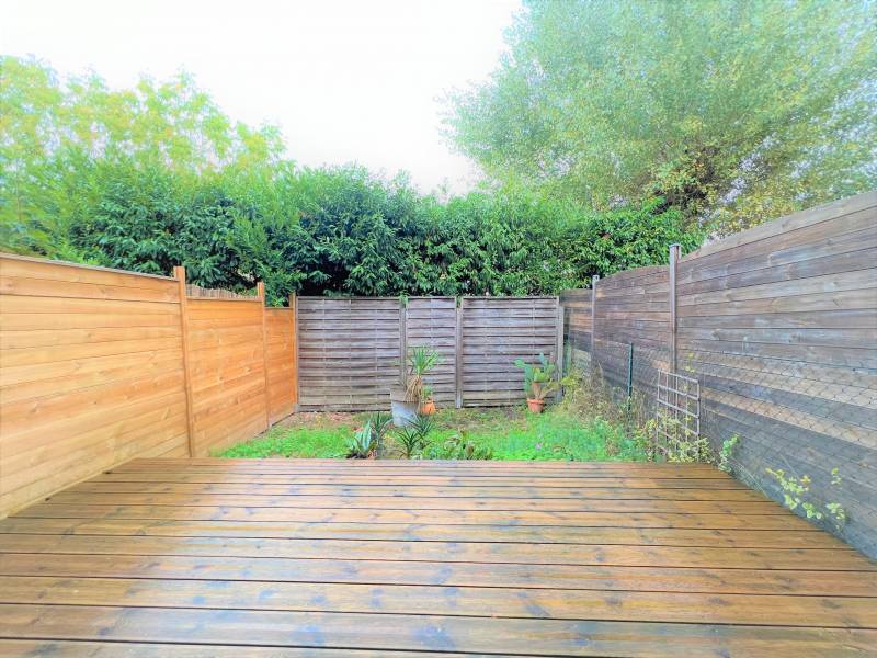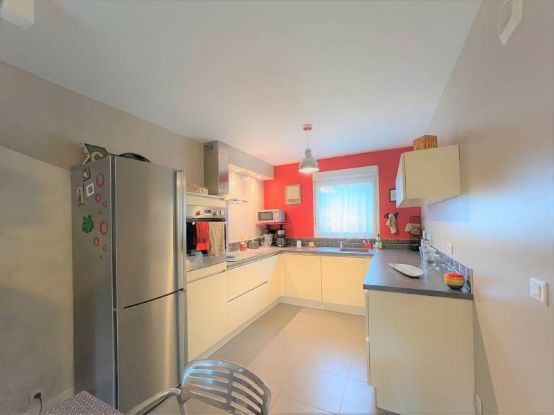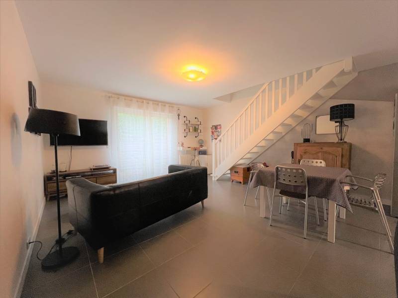 Mitoyenne des deux côtés, elle est composée, d'une entrée, d'une cuisine équipée, d'une salle de bains, de 2 chambres (12,45m² et 12,35m²), de 2 WC, et d'un beau séjour lumineux donnant sur une terrasse privative, sans vis-à-vis.