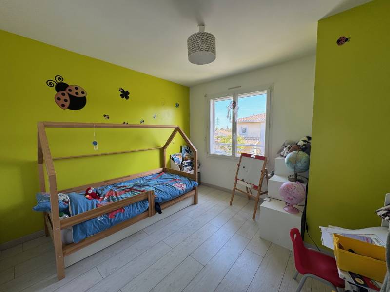 Votre agence l'Immobilière des Vignes vous présente à LEOGNAN, proche du centre, jolie maison de ville de 2005 mitoyenne, située au calme d'une impasse au sein d'une petite copropriété de 6 lots. Très fonctionnelle: entrée avec placard, séjour avec cuisine ouverte donnant sur la grande terrasse et le jardin, une chambre avec sde, wc, buanderie. A l'étage: palier, 3 chambres avec placard, sdb, wc. GARAGE. À 10 min en voiture du Tram C et de la rocade. Aucun travaux à prévoir. Climatisation réversible. PRODUIT RARE