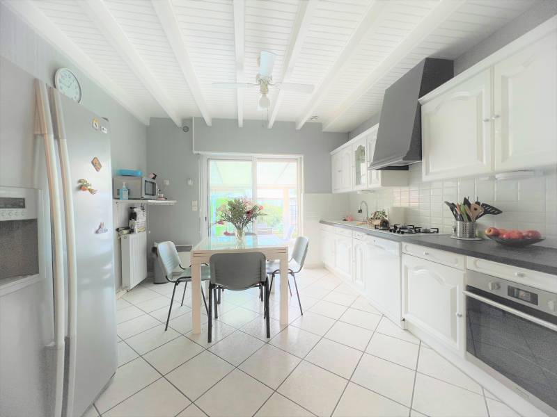 Composée au rez-de-chaussée, d'une entrée, d'un cellier, d'une salle de bains, d'un WC, d'une belle cuisine équipée prolongée par une véranda, de 2 chambres, d'un agréable salon avec une belle hauteur sous plafond.