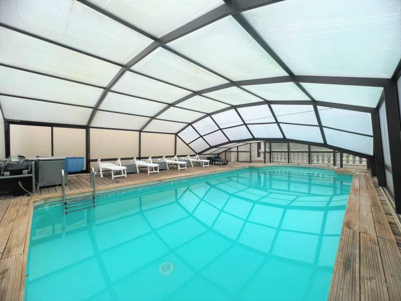 Vous trouverez à l'extérieur une agréable piscine chauffée avec un dôme, un coin cuisine d'été.