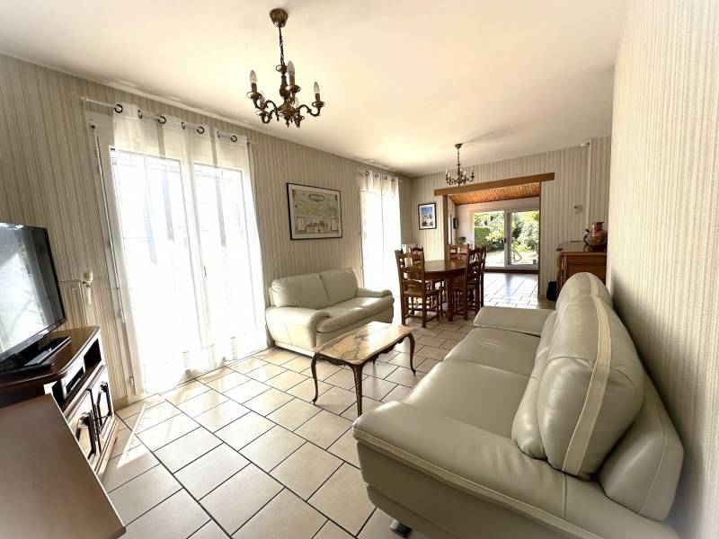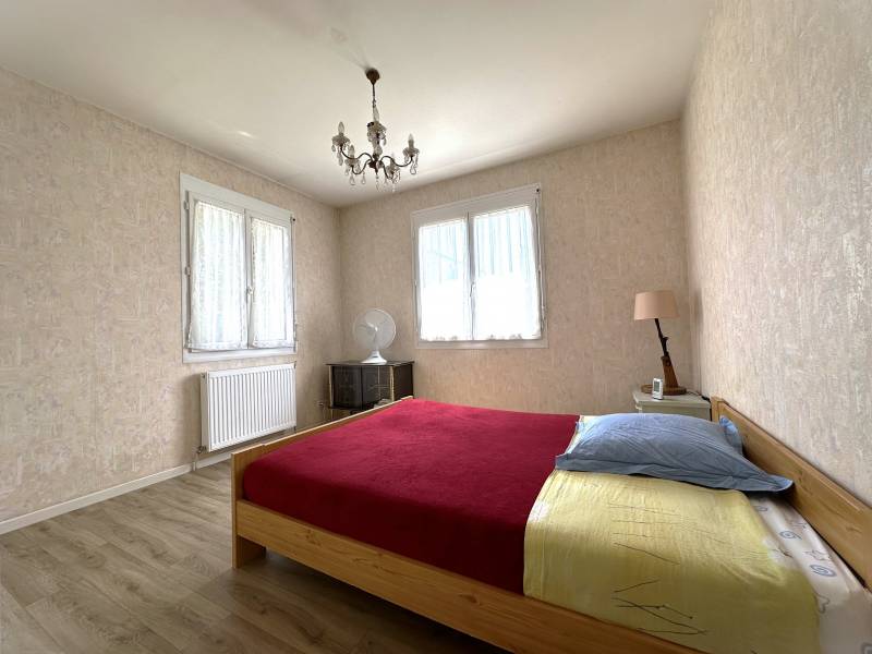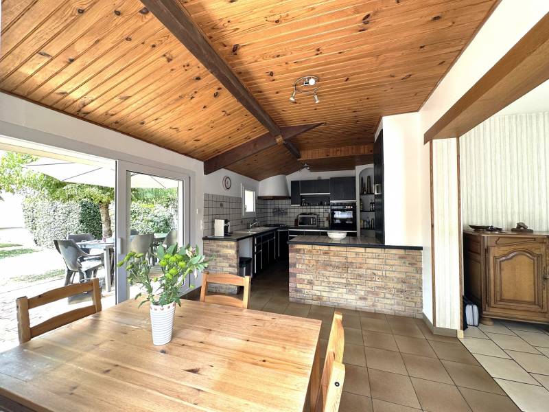 De plain-pied, la maison se compose d'une buanderie, de deux chambres, d'un dégagement, d'une salle d'eau, d'un WC, d'un salon/séjour lumineux ainsi que d'une cuisine avec accès sur une agréable terrasse sans vis-à-vis exposée SUD.