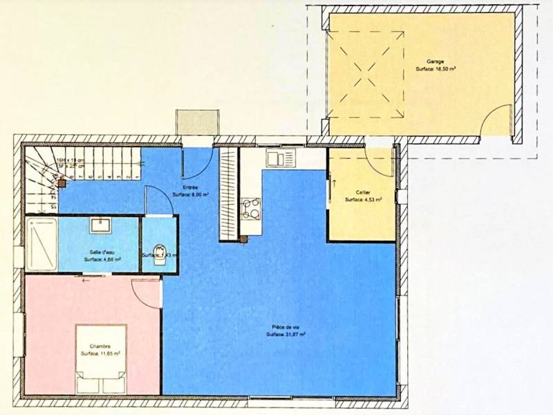 Elle est composée, au rez-de-chaussée, d'une belle entrée, d'un WC séparé, d'un cellier, d'une cuisine (à aménager selon vos goûts et vos envies) ouverte sur un beau salon/séjour donnant sur le jardin et d'une chambre avec sa salle d'eau privative. A l'étage, vous trouverez un palier qui dessert 2 chambres de plus de 11m² chacune et une salle d'eau avec WC .