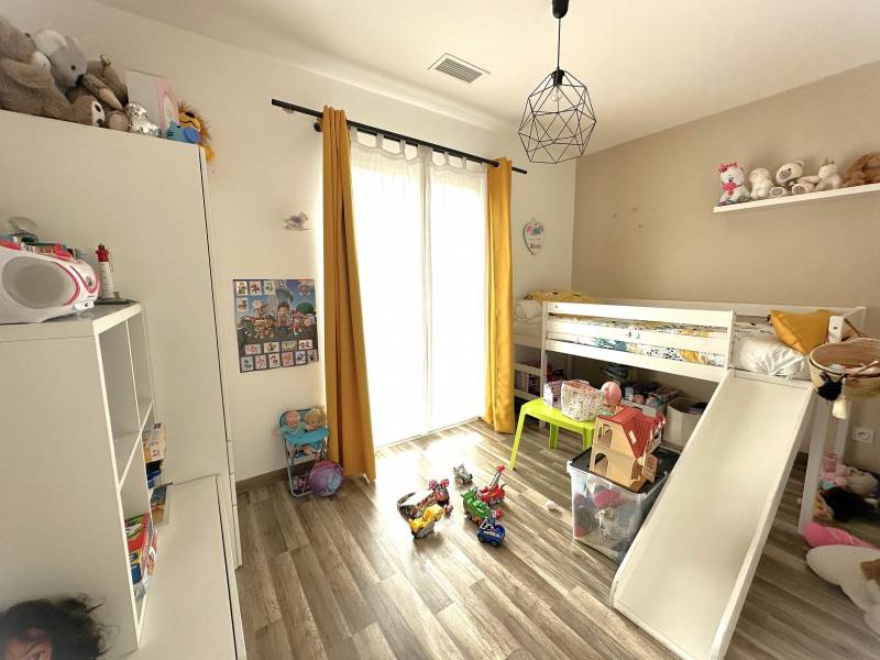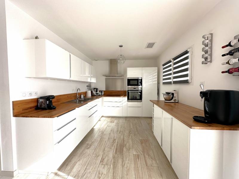 Construite en 2016, la maison se compose de trois chambres, d'une salle de bains avec baignoire et douche, ainsi que d'une cuisine ouverte sur un agréable salon séjour prolongé par une terrasse en bois bien exposée.