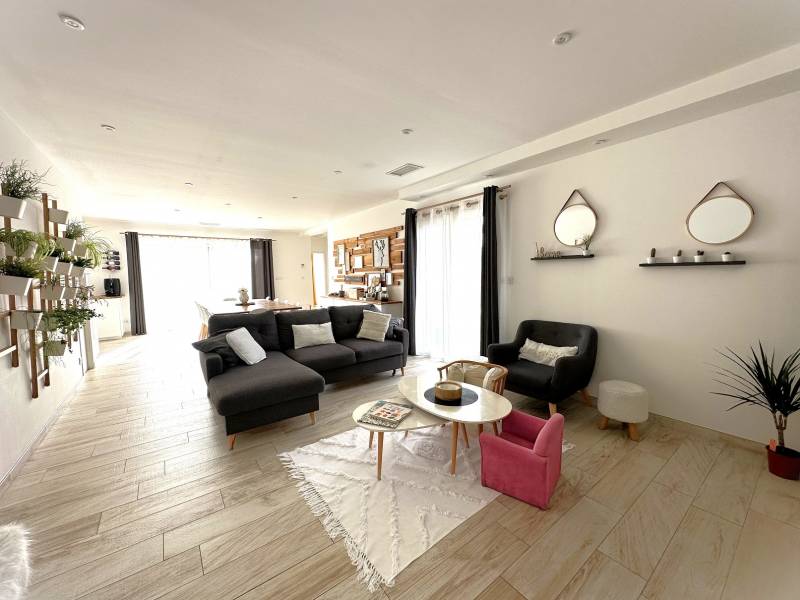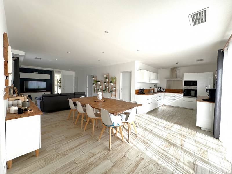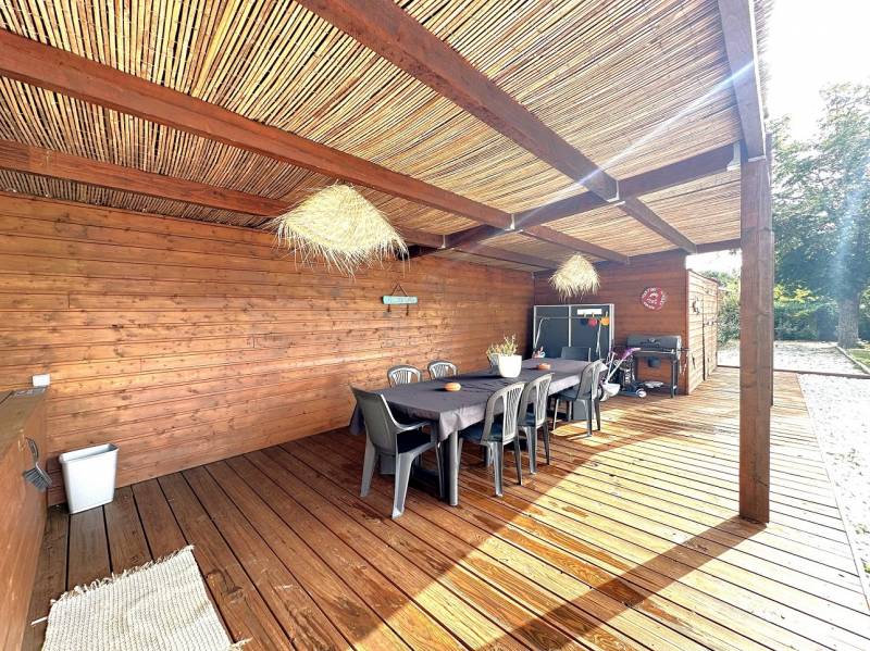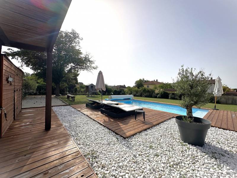 Le tout sur une parcelle de 993m² avec piscine, terrain de pétanque et cuisine d'été.