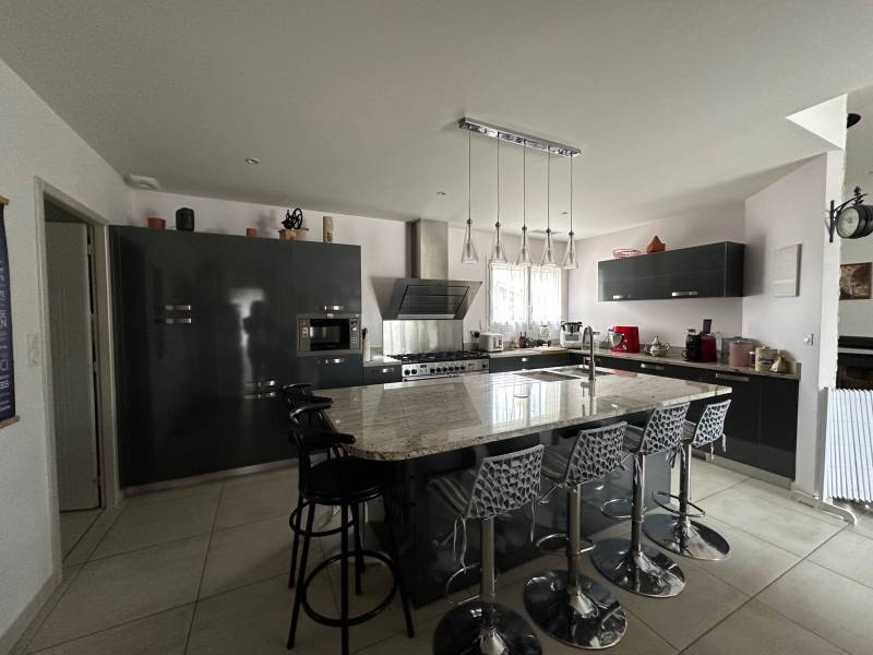 LA BREDE Quartier très prisé, tous commerces à pieds. Votre agence indépendante l'Immobilière des Vignes vous présente cette magnifique maison récente de 204 m² offrant tout le confort moderne avec ses 7 pièces lumineuses. L’espace de vie s’étend naturellement sur l’extérieur grâce aux grandes baies vitrées coulissantes.