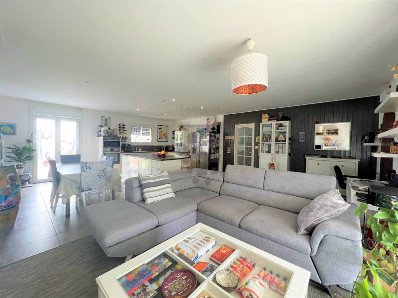 Elle est composée d'une cuisine entièrement équipée ouverte sur un beau salon/séjour lumineux, d'un cellier/buanderie, d'une salle de bains, d'un WC séparé, et de 4 chambres dont une avec sa salle d'eau et WC.