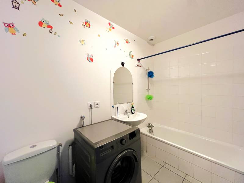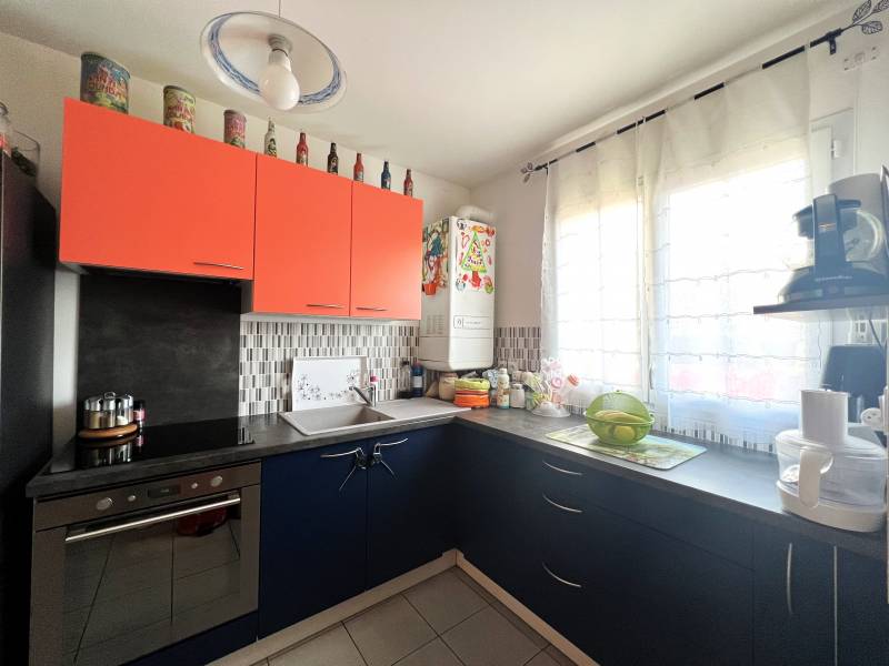 Elle est composée d'une entrée, d'une salle de bains avec wc, de deux chambres de plus de 11m² chacune avec placards, d'une cuisine aménagée ouverte sur le salon/séjour donnant sur une agréable terrasse.