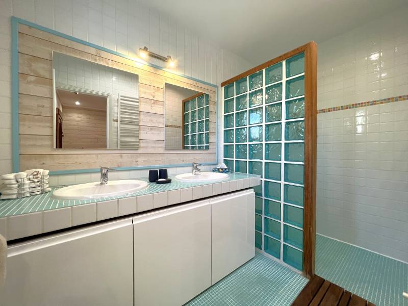 Elevée d'un rez-de-chaussée, se composant d'un hall d'entrée, d'un WC, d'une cuisine ouverte, de 2 suites parentales avec dressing et salle d'eau (17.6m² et 13.4m²).