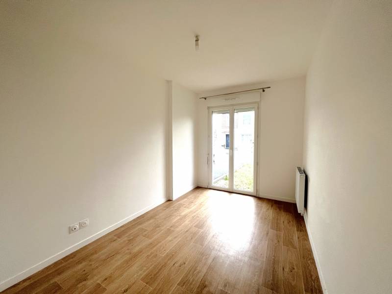 Elle est composée d'une entrée, de 3 chambres (entre 9 et 12m²), d'une salle de bains avec wc et d'une cuisine ouverte sur le salon/séjour donnant sur une agréable terrasse en bois.