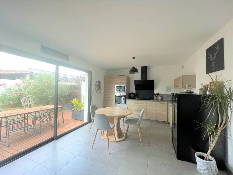 Villenave d'Ornon proche des commodités. Votre agence indépendante locale, l'IMMOBILIERE DES VIGNES, vous présente, cette jolie maison mitoyenne à étage, de 2019, composée de 3 chambres avec placards (entre 10 et 14m²), d'une salle de bains avec douche et baignoire, de 2 wc séparés et d'une cuisine, aménagée et équipée, ouverte sur un beau salon/séjour lumineux donnant sur une agréable terrasse en bois prolongée par son jardin exposé Sud.