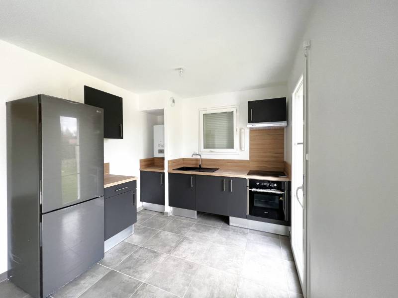 Elle est composée, d'une entrée avec placard, d'une cuisine ouverte équipée, d'un cellier/buanderie, d'un wc séparé, d'une salle de bains avec wc, de 3 chambres avec placard et d'un agréable salon/séjour lumineux donnant sur une terrasse carrelée prolongée par un jardin entièrement clôturé.