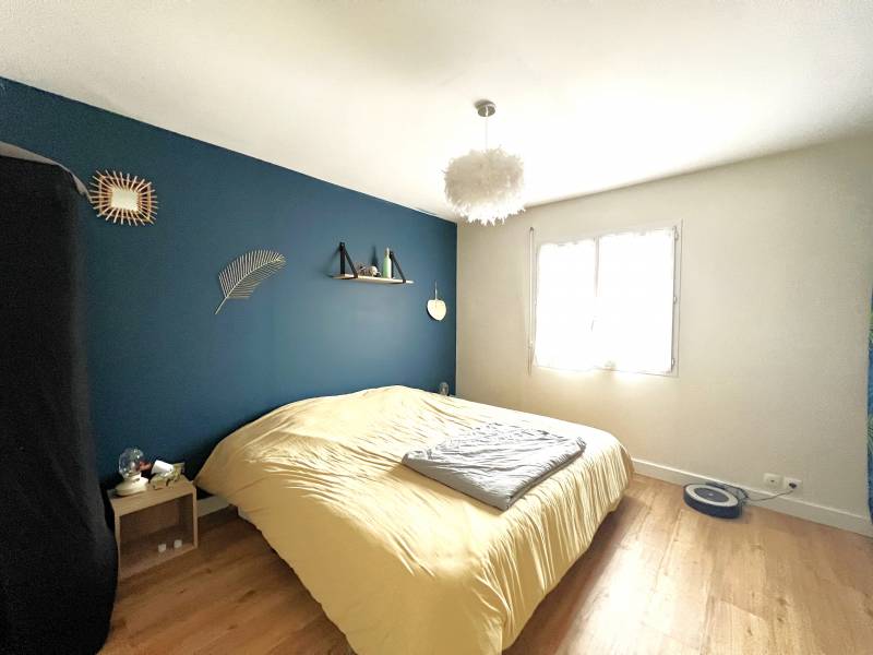 D'une surface de 87m², elle est composée d'une entrée, d'une cuisine, aménagée et équipée, ouverte sur un beau salon séjour lumineux, d'un cellier/buanderie, de trois chambres (entre 10 et 12m²) dont deux avec placard, d'un wc séparé et d'une salle bains.
