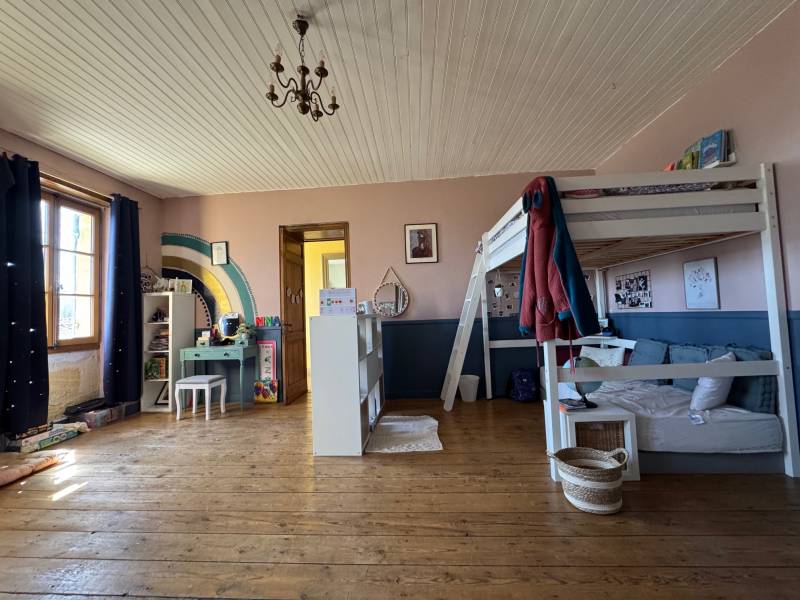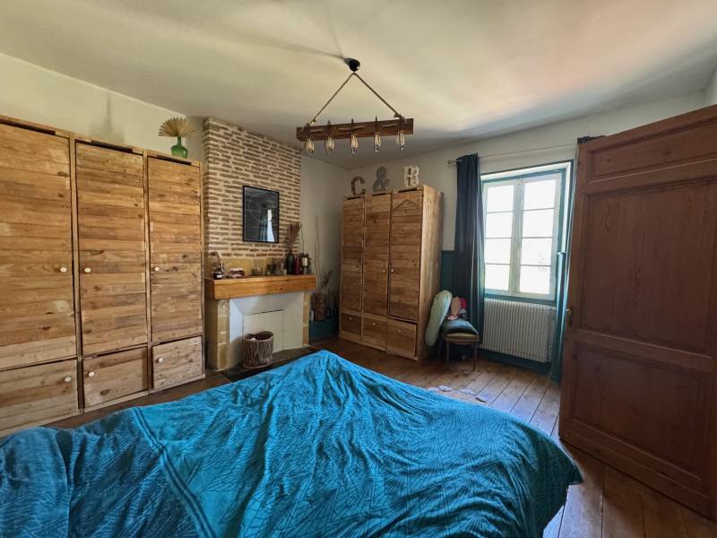 A l'étage: vaste palier desservant quatre grandes chambres avec cheminées et parquet, salle de bains.